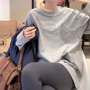 百搭显瘦打底衫 T恤女2025秋冬新款 ins 长袖 潮牌字母白色中长款