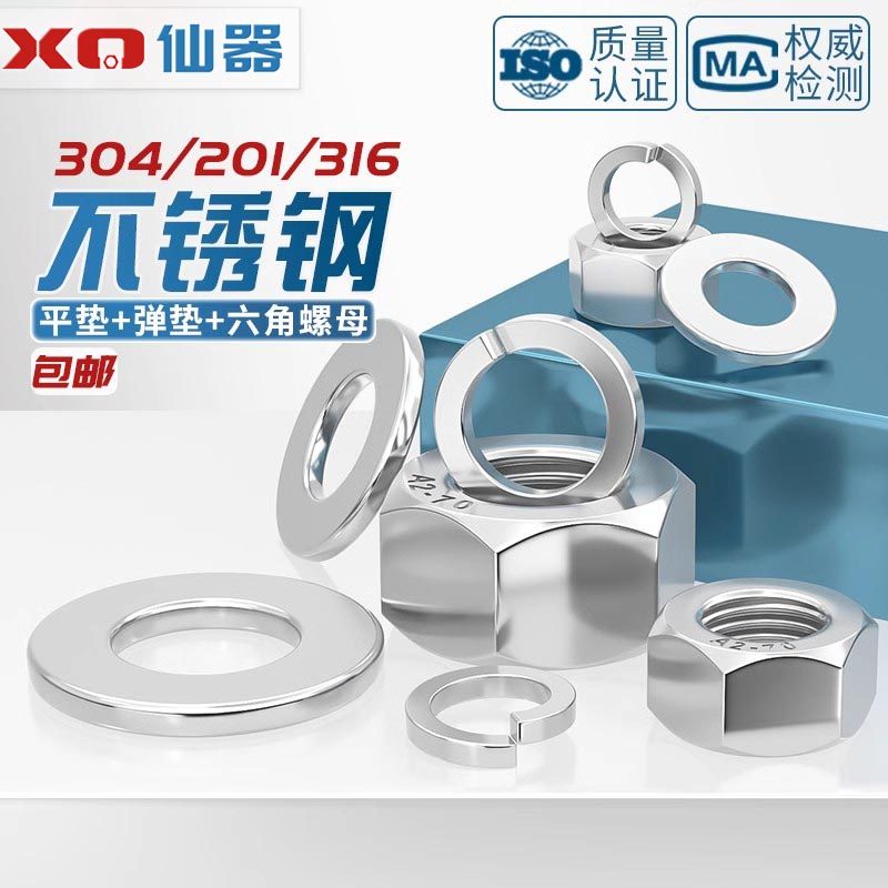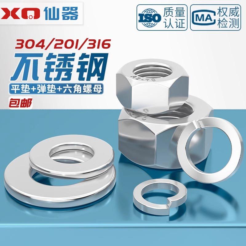 M2M2.5 316L不锈钢螺母六角螺丝帽平垫片弹垫组合套装 M30 201 304