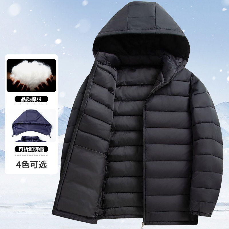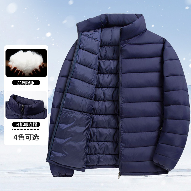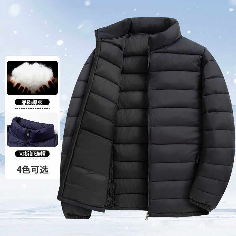 中老年爸爸装 轻薄棉服立领秋冬保暖棉袄连帽大码 宽松外套 新款 男士