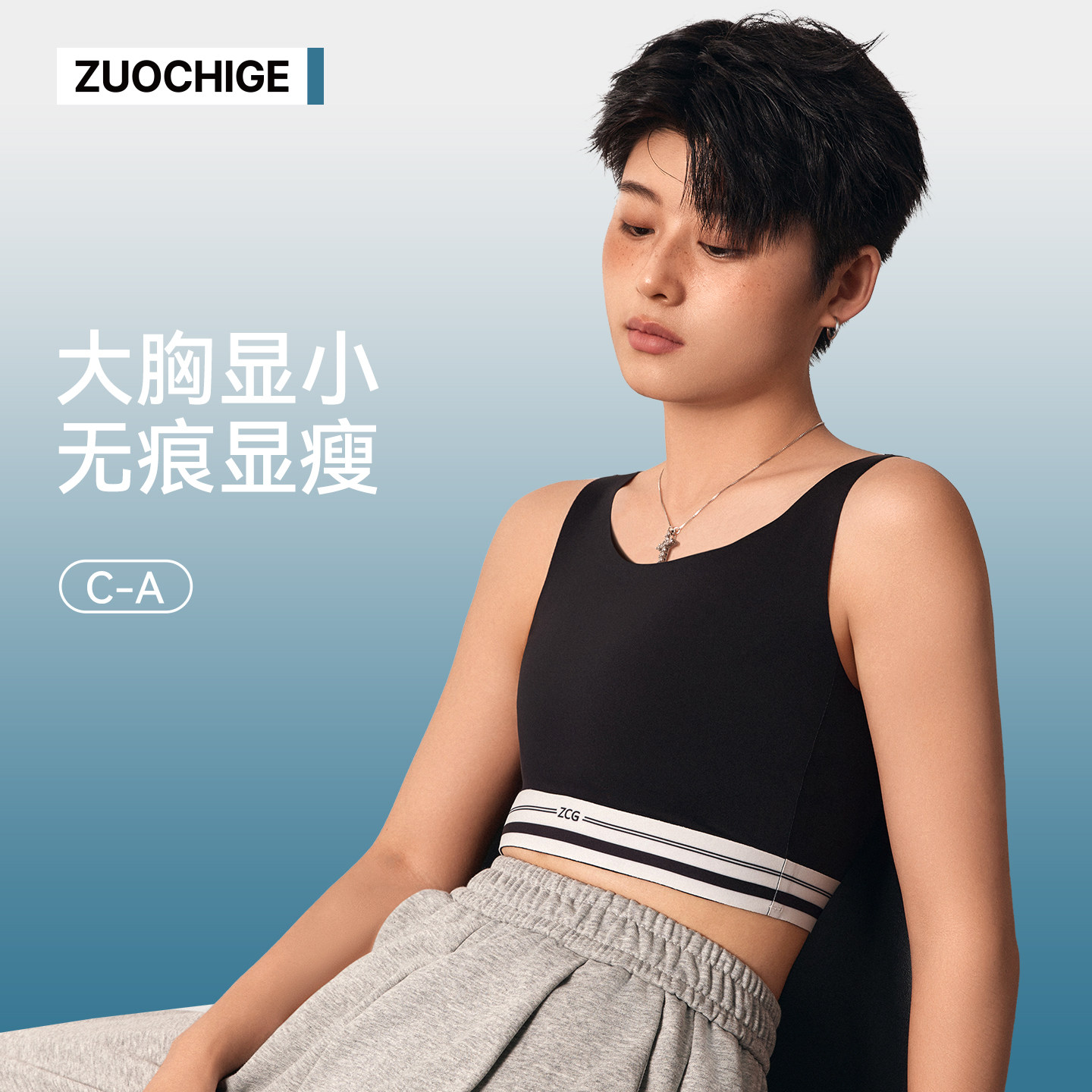 佐驰歌无痕束胸内衣大胸显小中性超平防震运动学生背心女缩胸夏季