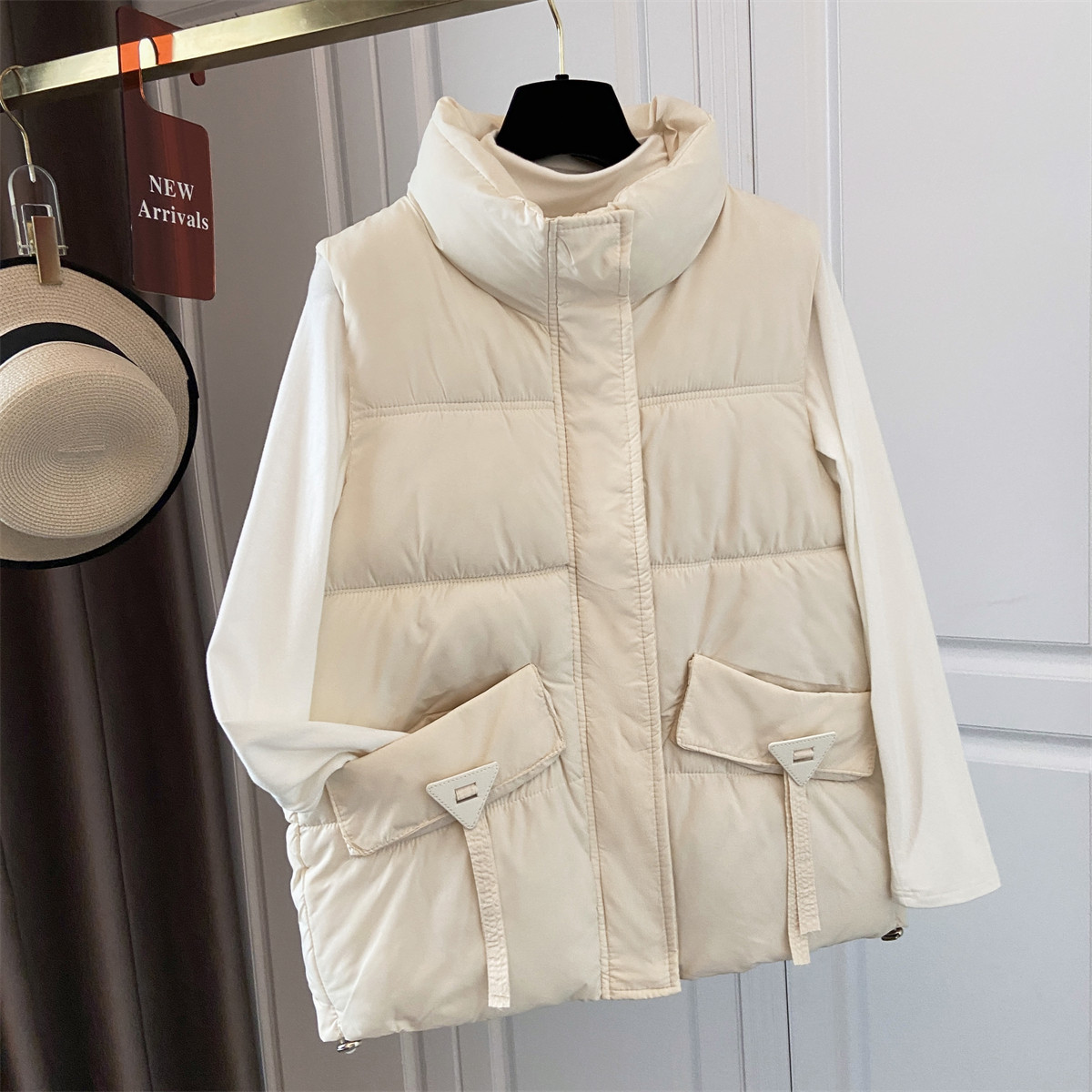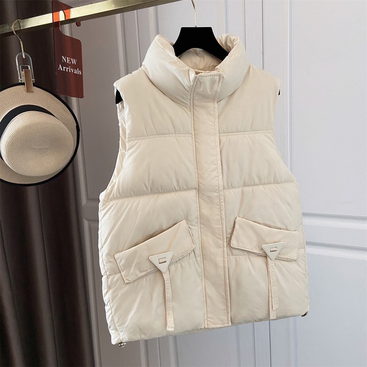 100绵羊毛充气绒面包马甲男女秋冬外穿休闲坎肩保暖马夹