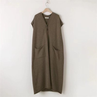 300斤V领无袖 秋冬胖MM韩版 叠穿大码 毛衣裙时尚 连衣裙 休闲针织长款