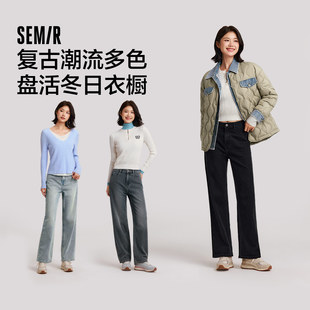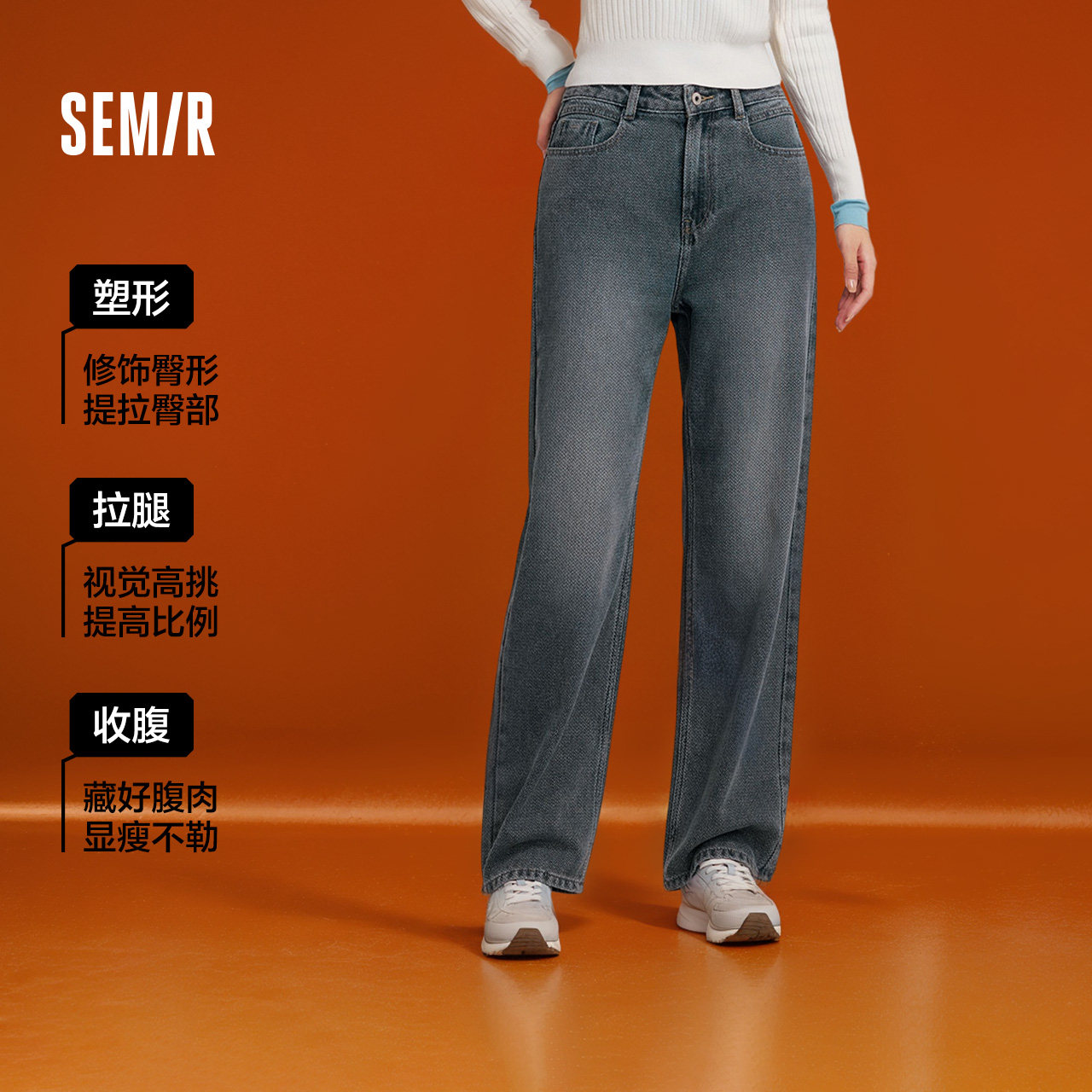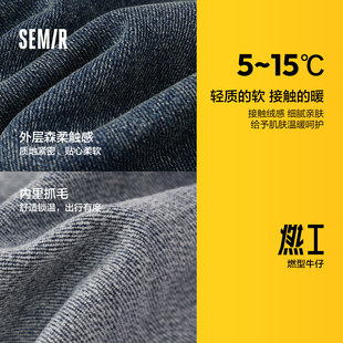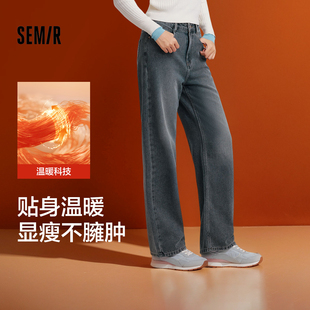 女舒适抓毛阔腿裤 森马牛仔裤 2024新款 冬季 森柔牛仔 长裤 商场同款