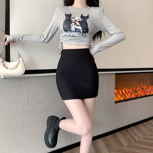 黑色包臀裙紧身性感一步裙子 弹力高腰包臀半身裙短裙春季 新款 韩版