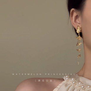 「月蝶鎏金」金色蝴蝶耳环女高级感流苏耳坠液态金属复古法式 耳饰