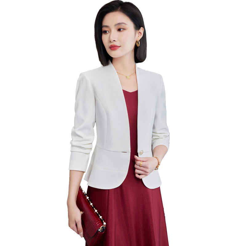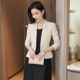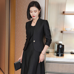 气质播音员主持人连衣裙两件套 外套女春秋新款 高端无领西装 短款