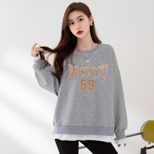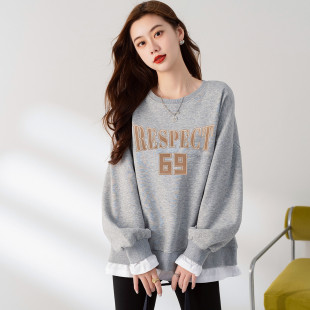 班尼路卫衣女2026新款 印花宽松圆领休闲无帽上衣J 春秋假两件长袖