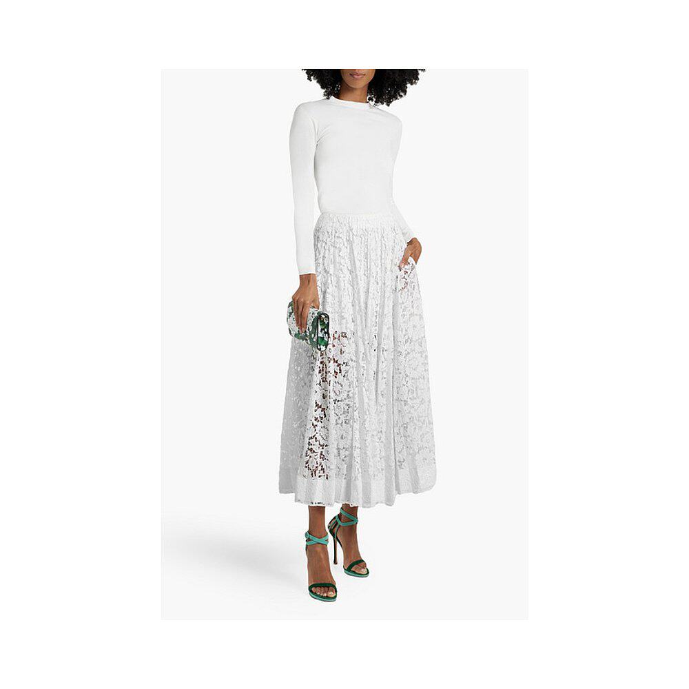 半身裙 香港直邮Valentino 褶裥凸纹蕾丝长款 女士 B0RA5 华伦天奴