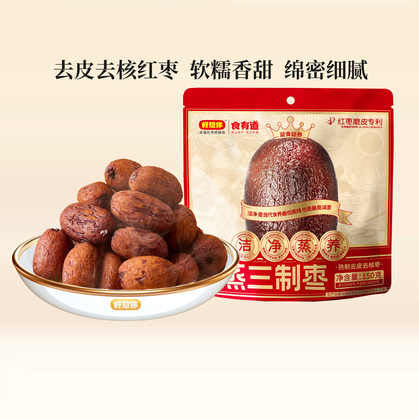 好想你_0添加三蒸三晒三制红枣新疆灰枣子去皮去核低GI零食黑金枣