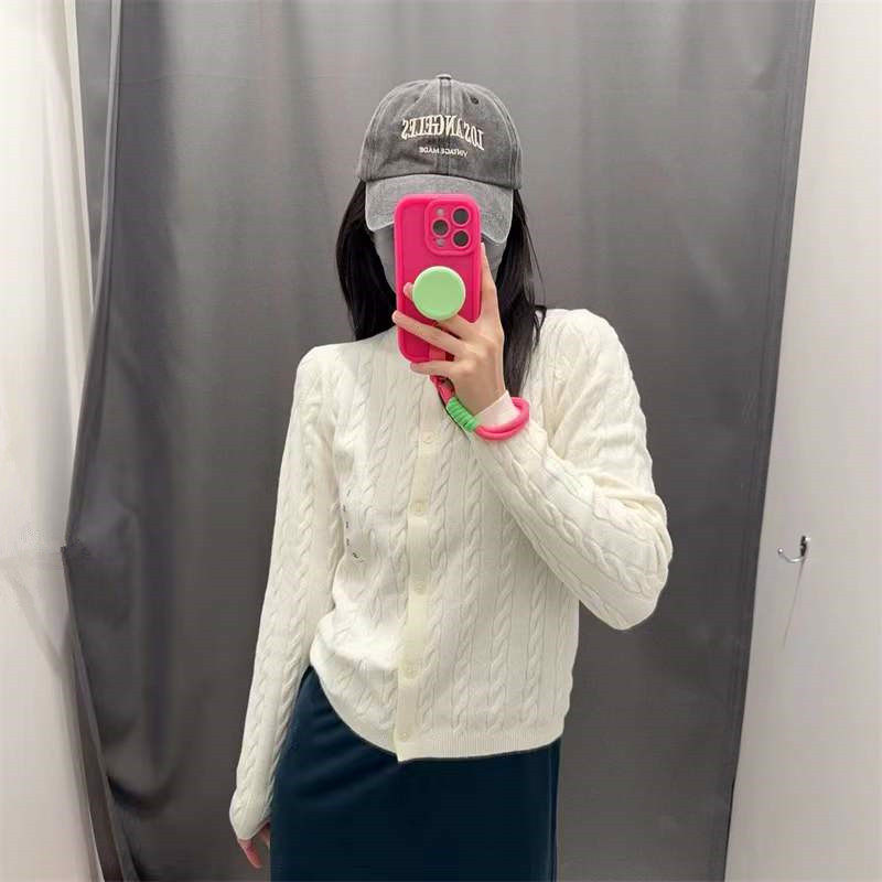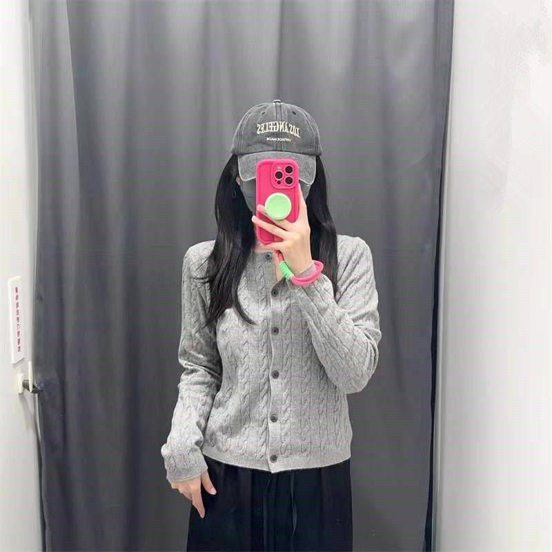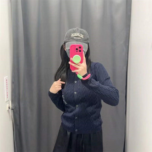 秋冬新款 空调衫 纽花圆领针织开衫 长袖 外套481477 毛衣毛衫 日系女装