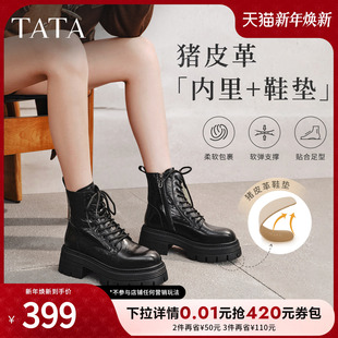 TATA他她巡星者靴子女鞋 靴加绒千层马丁靴英伦短靴CG801DD5 工装