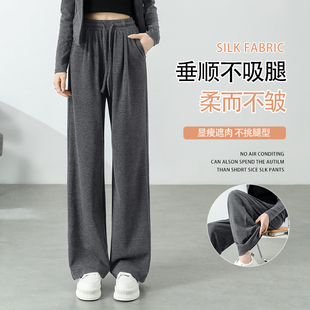 高腰直筒垂感慵懒春秋宽松阔腿裤 新款 女秋季 KHV真维斯灰色糯米裤