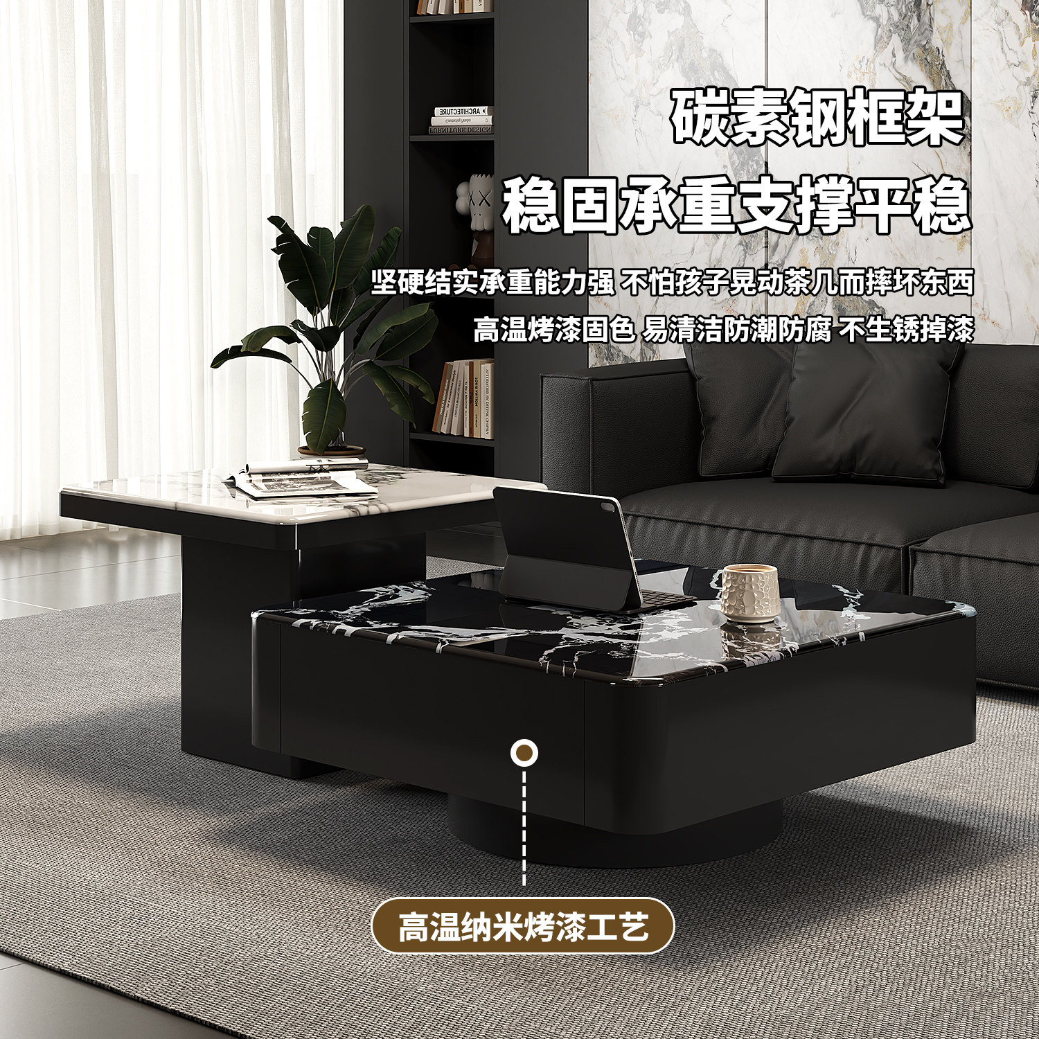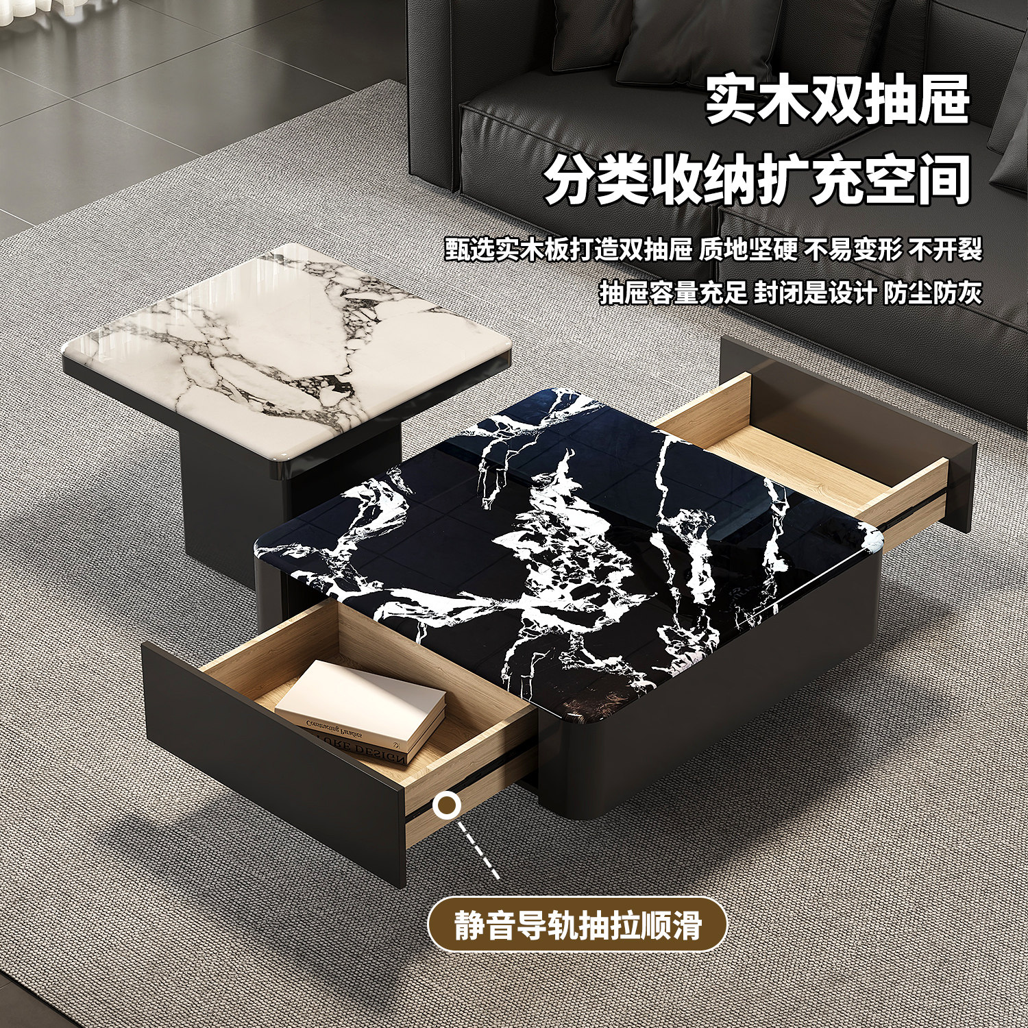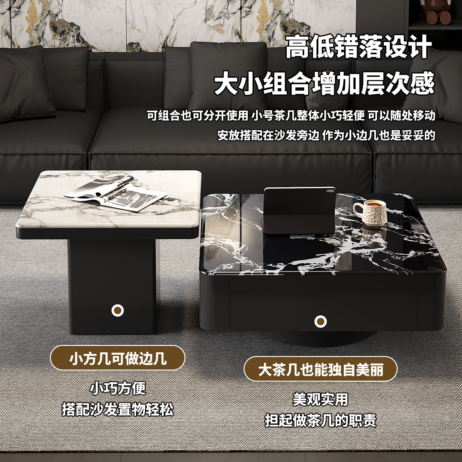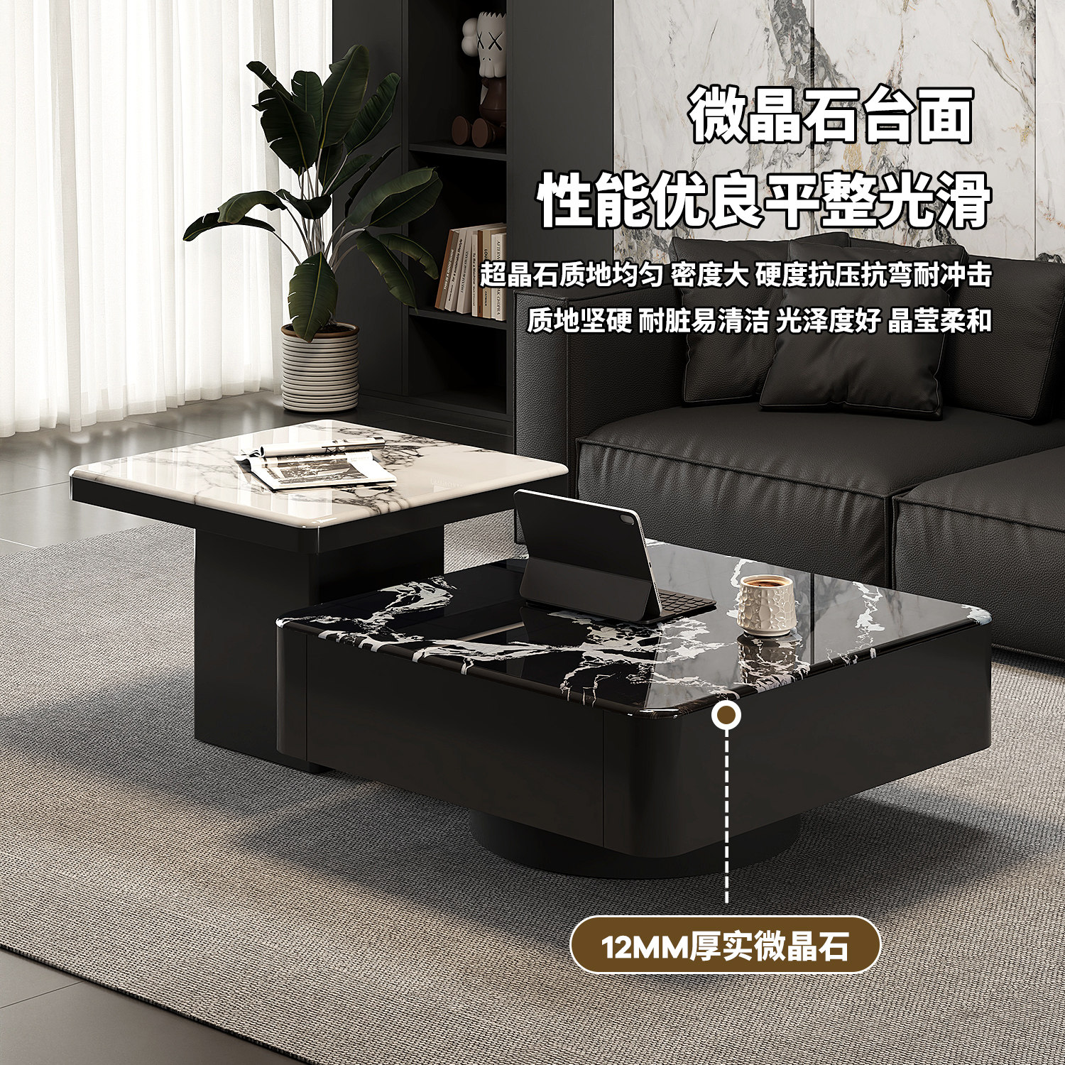意式 茶几 轻奢超晶石实木茶几客厅家用茶桌高端微晶石茶几2025新款