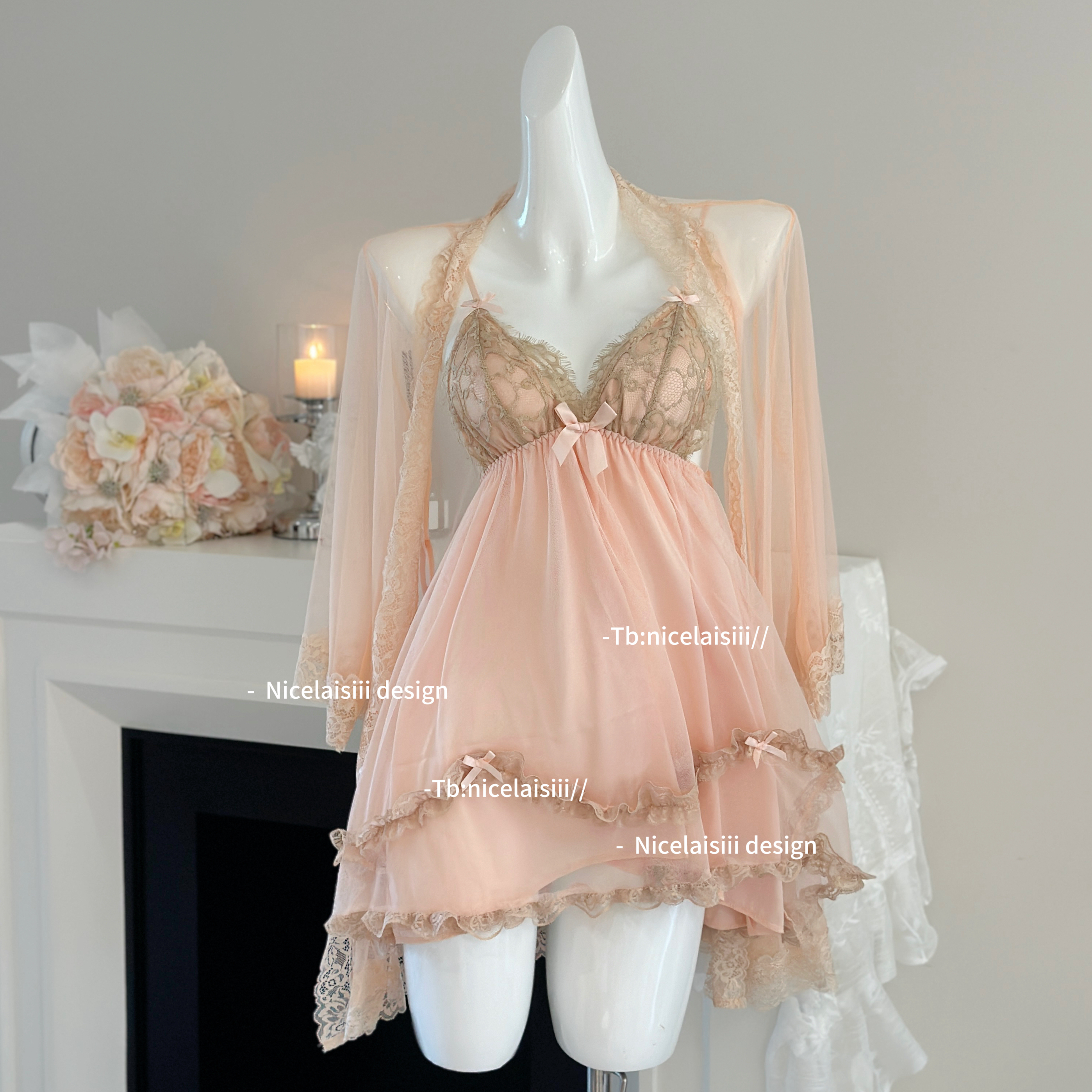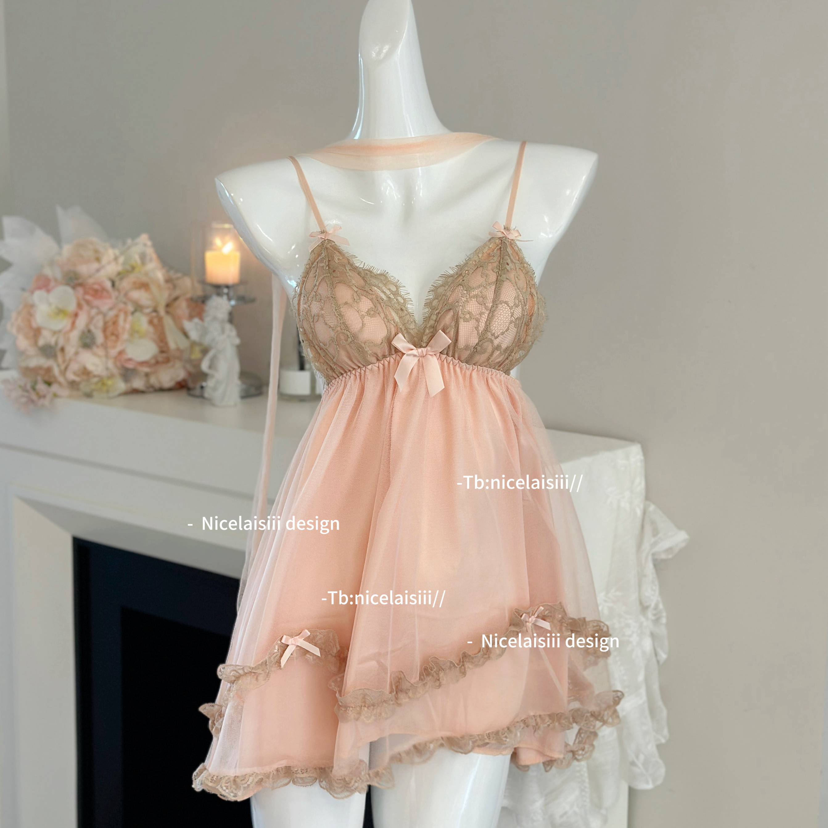 Nicelaisiii茉莉甜茶 带胸垫网纱蕾丝甜美吊带睡裙少女感家居睡衣