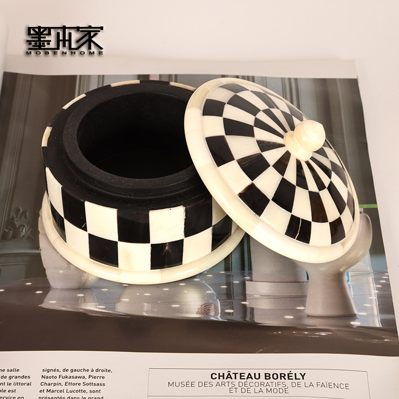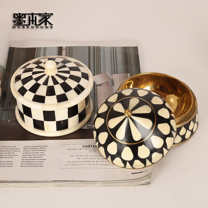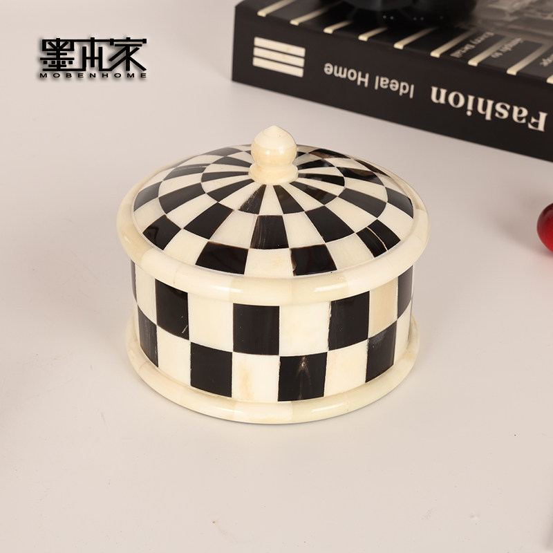 饰罐收纳软装 装 摆件 黑白拼接艺术收纳盒 印度进口手工牛骨首饰盒