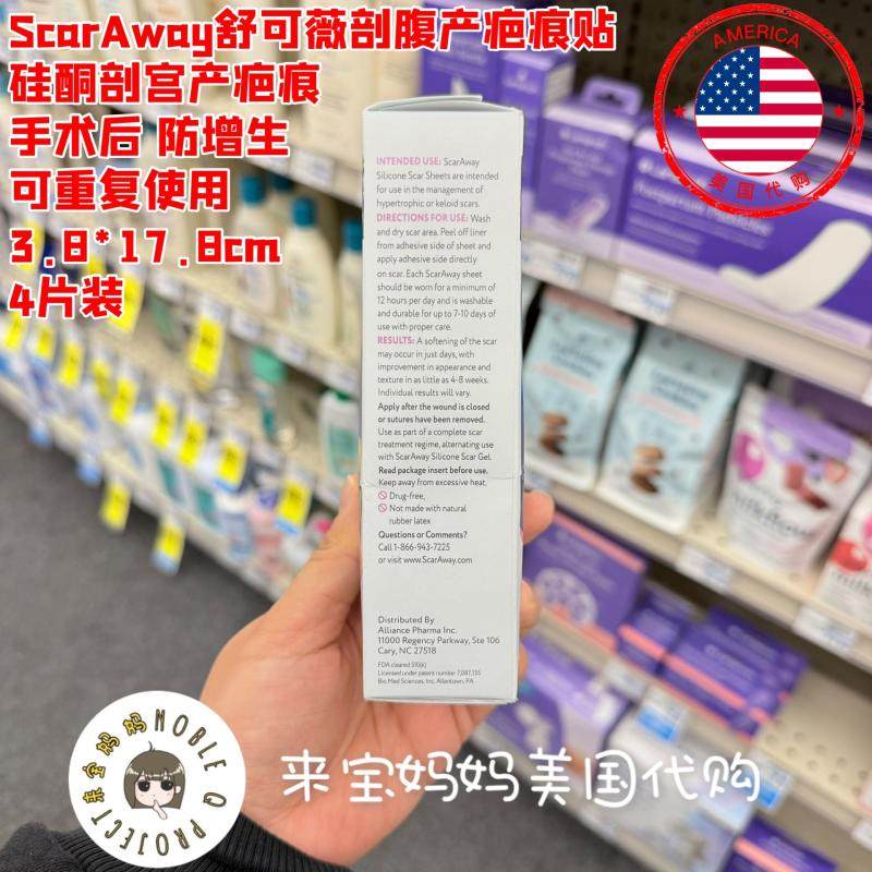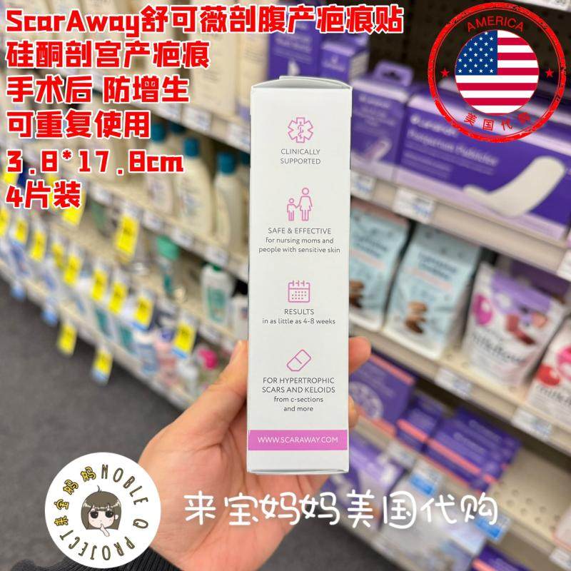 美国代购 ScarAway舒可薇剖腹产专用重复用硅胶疤痕贴增生凸起4片