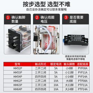 62P直流8脚小型电磁继电器 52p 中间继电器220v交流24 12伏hh54p
