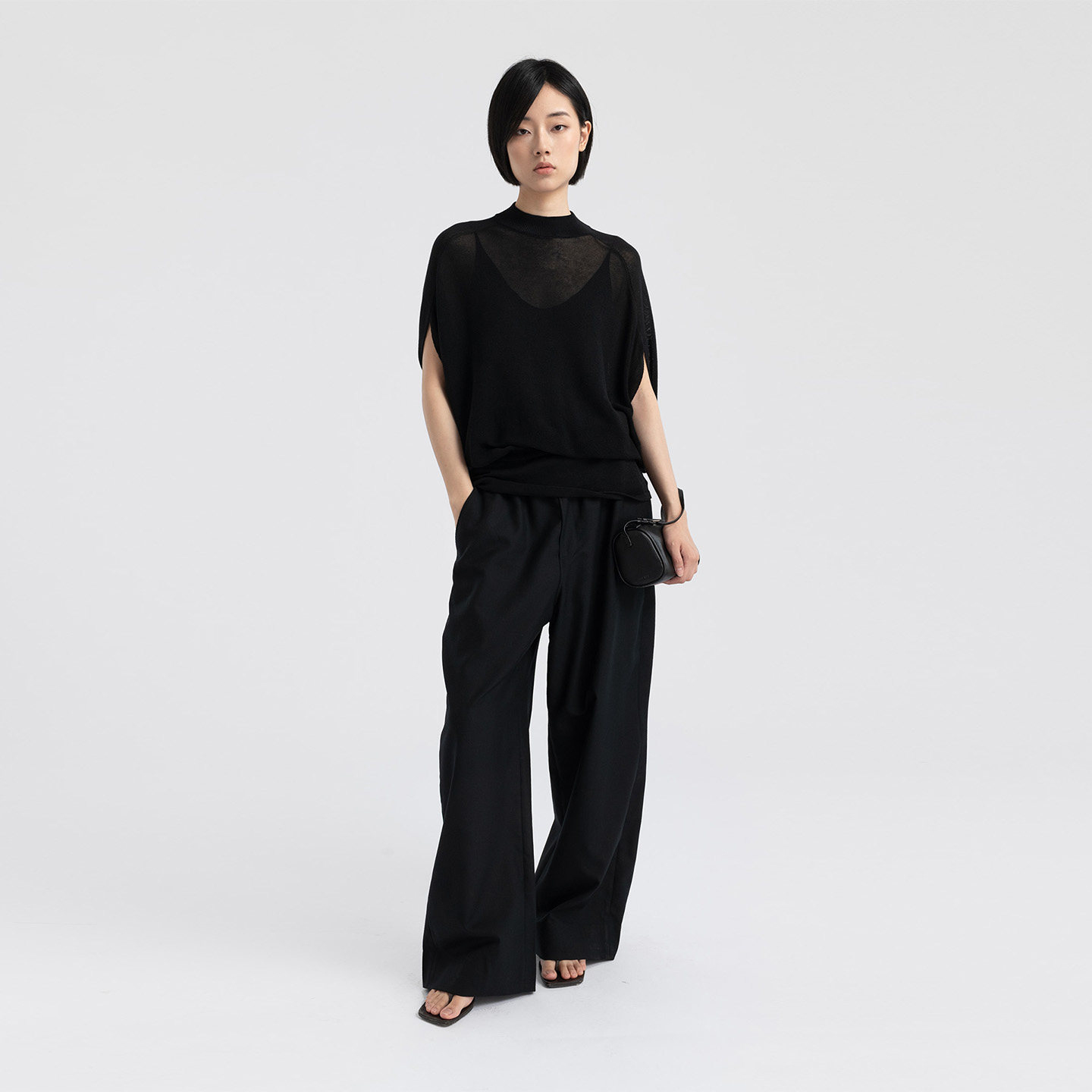 轻薄罩衫 322WORKHOUSE黑色蝙蝠袖 夏季 上衣女2025新款 B748 针织短袖