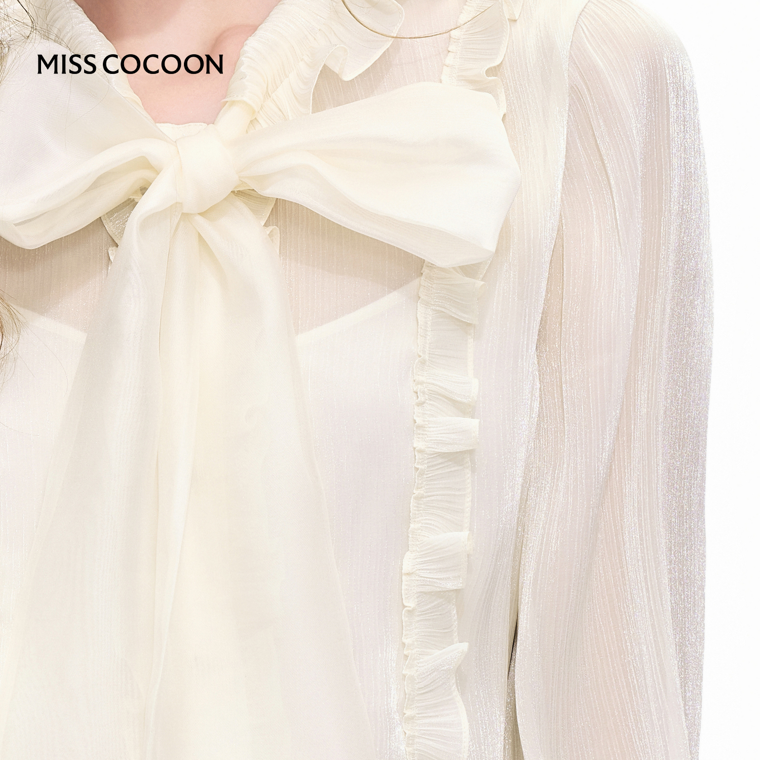 宫廷风蝴蝶结系带上衣 新款 MISSCOCOON可可尼白色衬衫 女2025秋季
