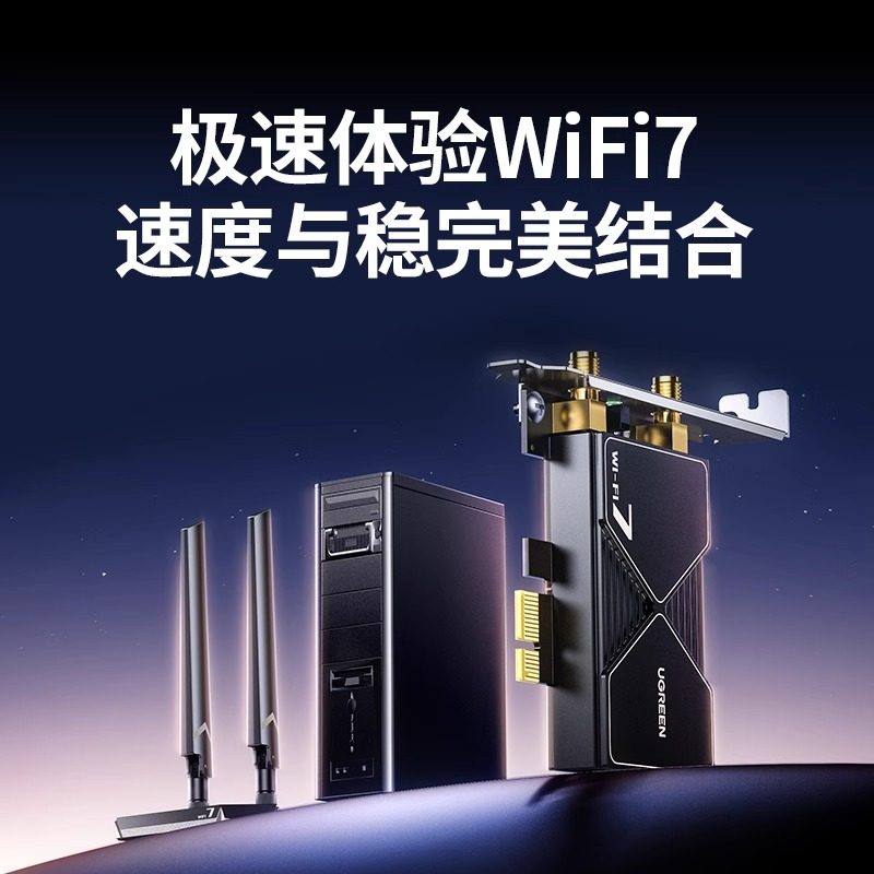 绿联PCIE无线网卡蓝牙二合一台式 机wifi7接收发射器内置PCIE转接板插电脑主机5.4蓝牙适配器5G千兆双频信号