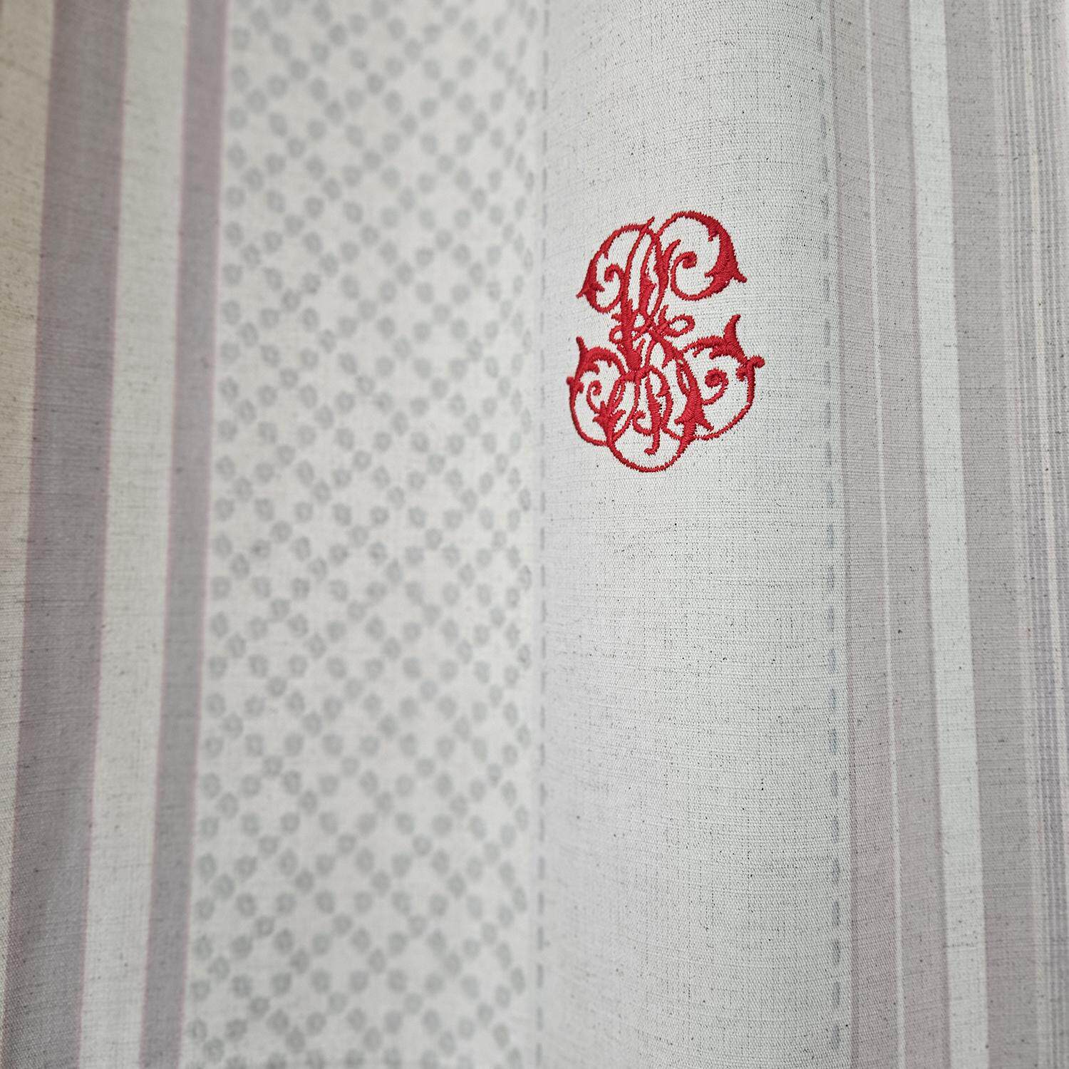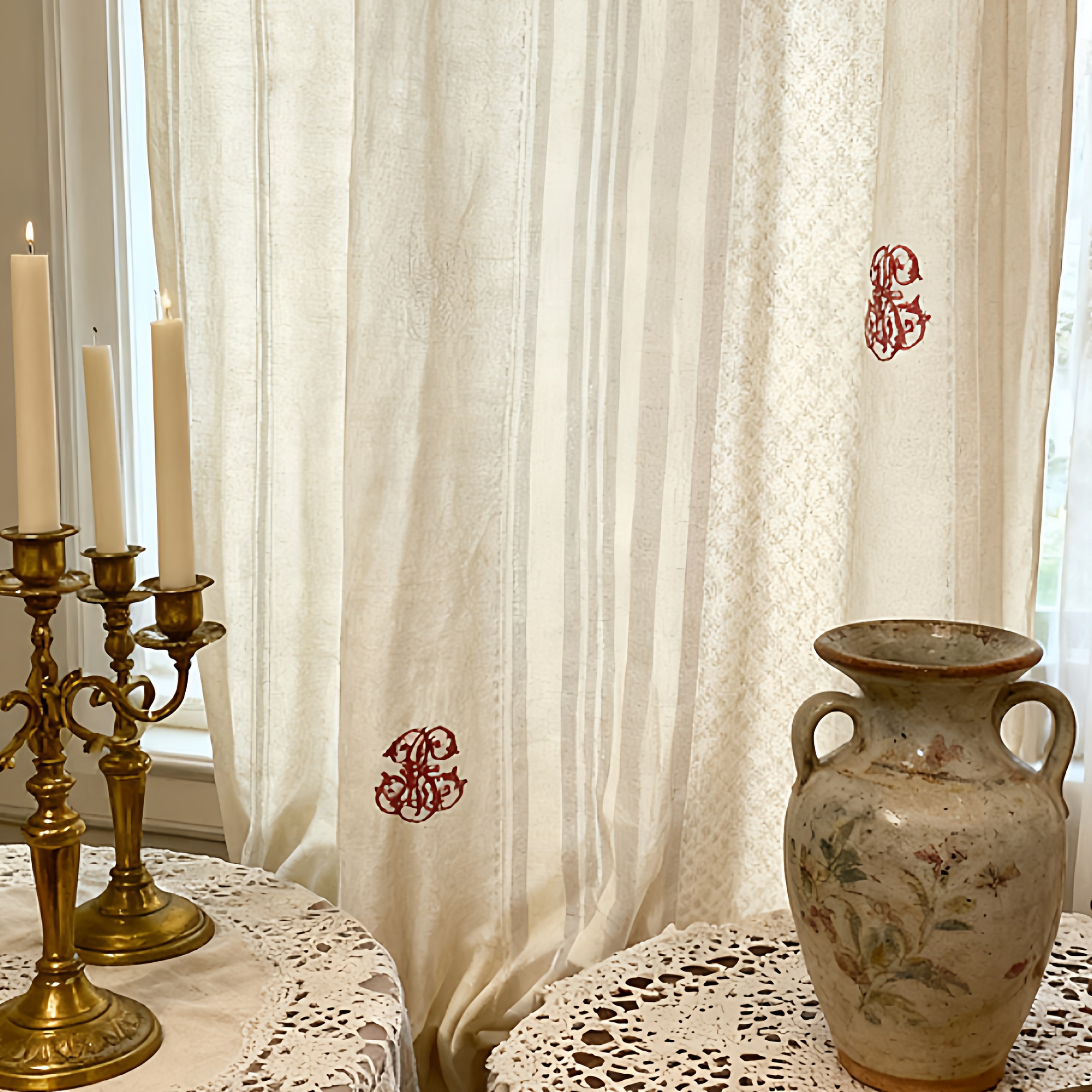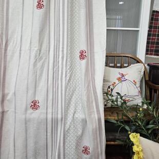 法式 浪漫棉麻刺绣字母绣系带帘红绣遮光条纹印花简约现代贵族窗帘