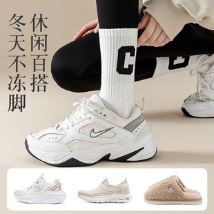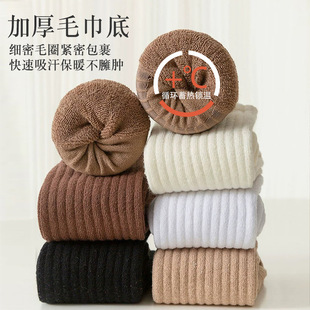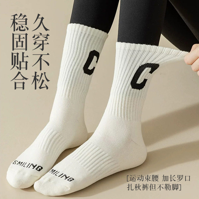 袜子女士秋冬款 中筒袜毛圈底大C字母高筒情侣运动加绒加厚长筒袜