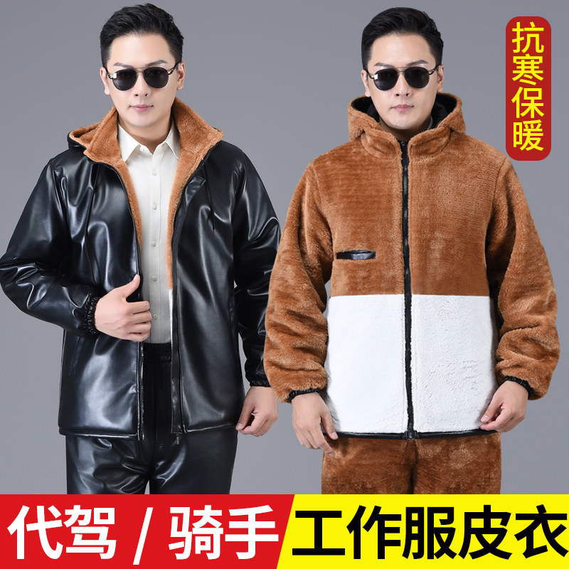 骑行代驾皮衣男加绒加厚外卖骑手防水防风防污保暖抗寒工装 皮衣