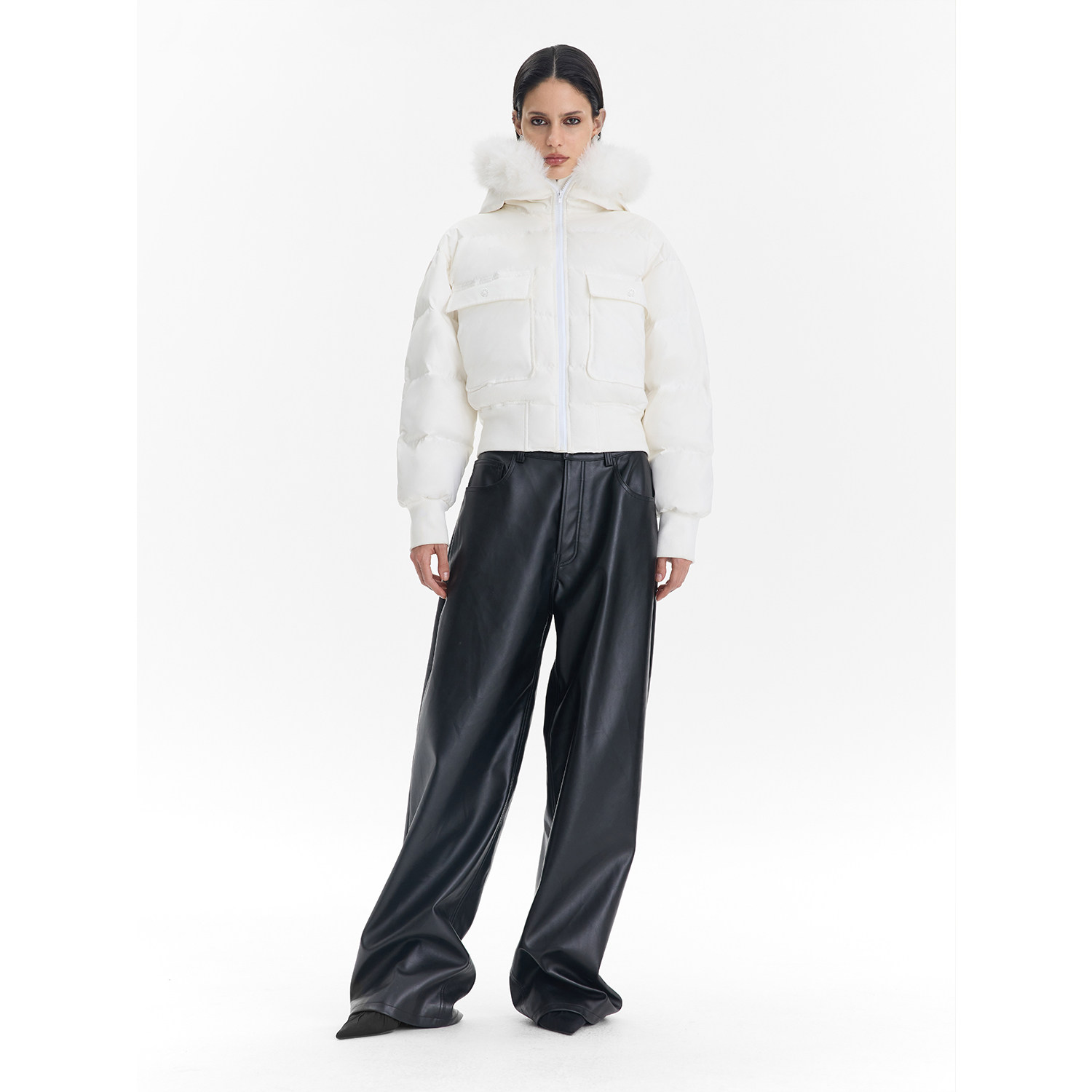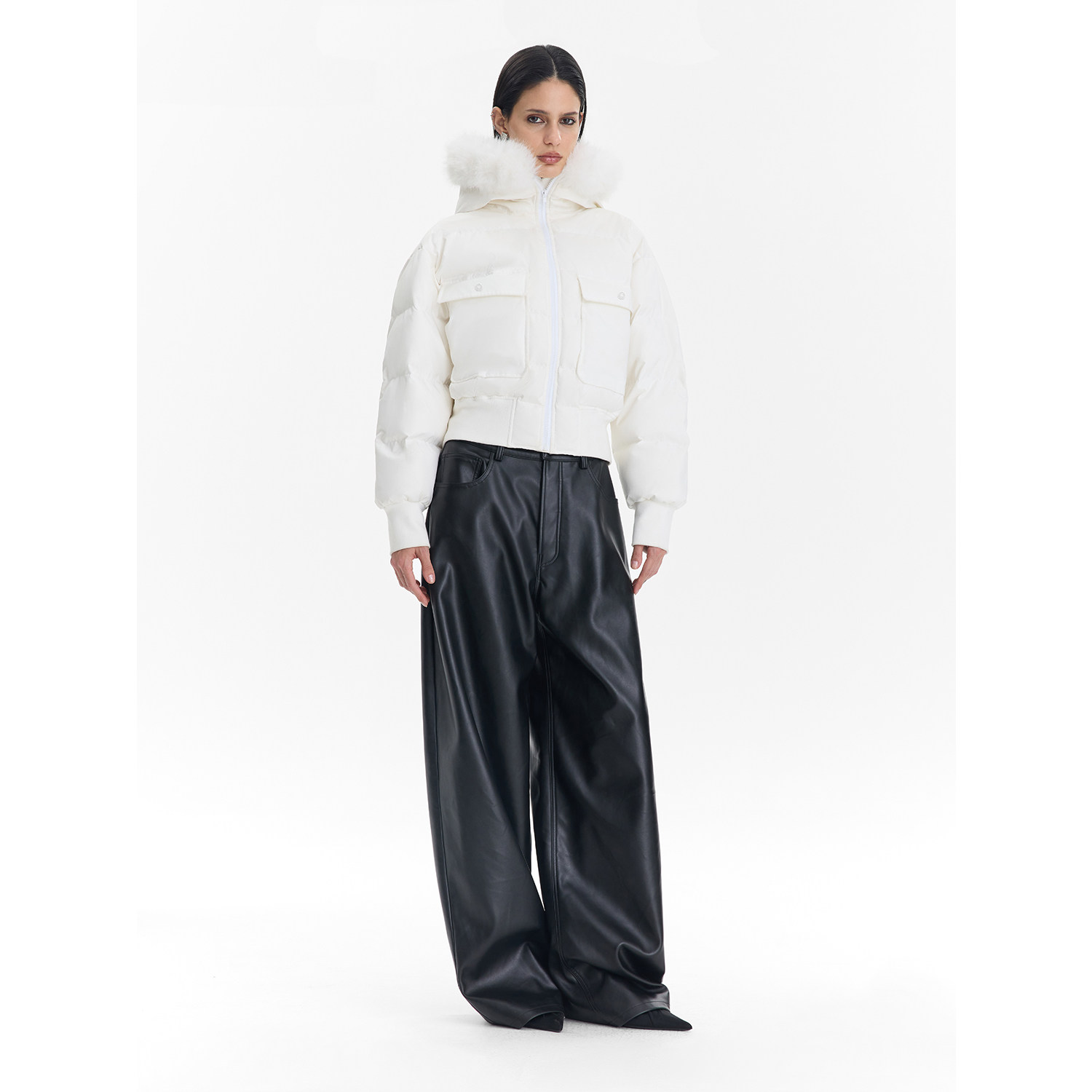工装 白色连帽毛领短款 保暖外套 Back90白鸭绒羽绒服女冬季 Called