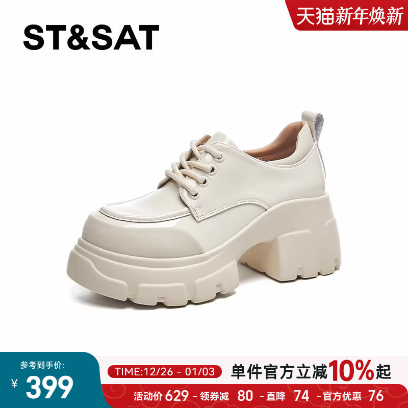 女2025秋季 女单鞋 新款 粗跟高跟乐福鞋 厚底松糕鞋 星期六增高小皮鞋