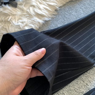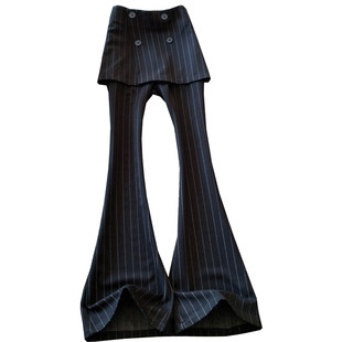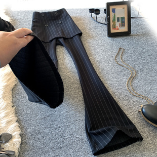 假两件围裙弹力显瘦喇叭长裤 女2025春秋新款 裤 竖条纹黑色微喇西装