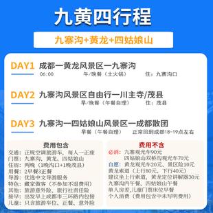 九寨沟黄龙四姑娘山达古冰川旅游3天2晚跟团纯玩三日游 有8人小团