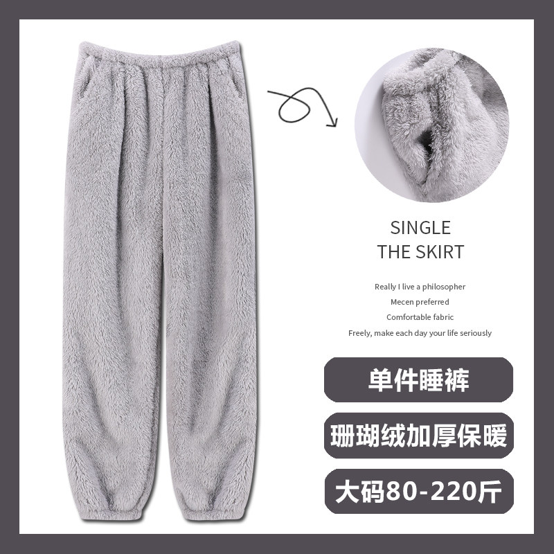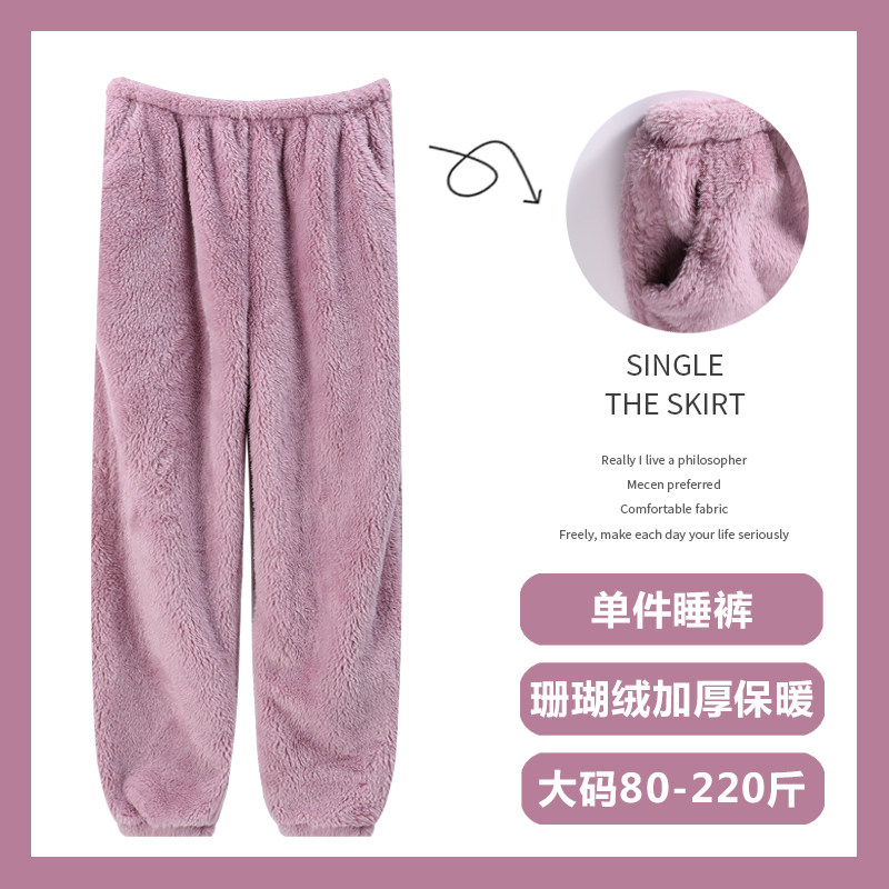 裤 睡裤 珊瑚绒冬季 直筒散口宽松大码 子 女秋冬加厚特厚法兰绒长裤