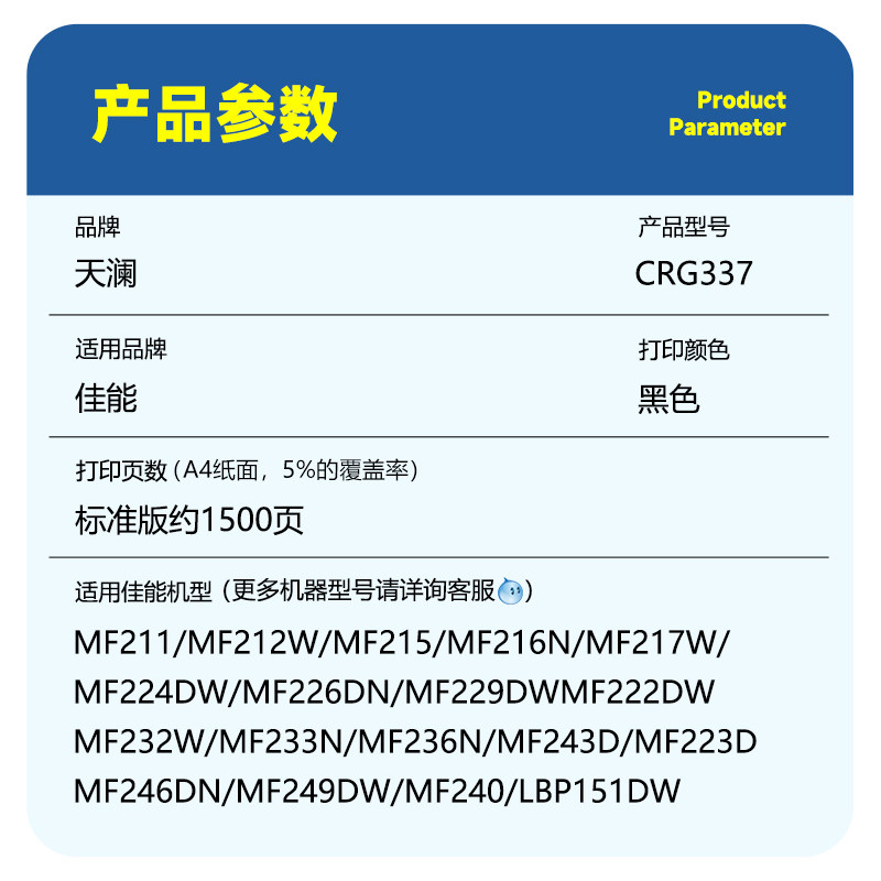 210 MF215 240 249dw打印机236n墨粉226dn 246dn墨盒mf232w 243d 天澜适用佳能CRG337硒鼓MF211碳粉盒MF212W