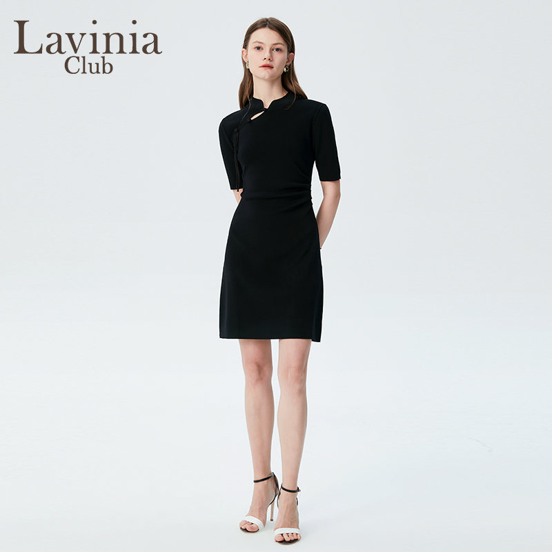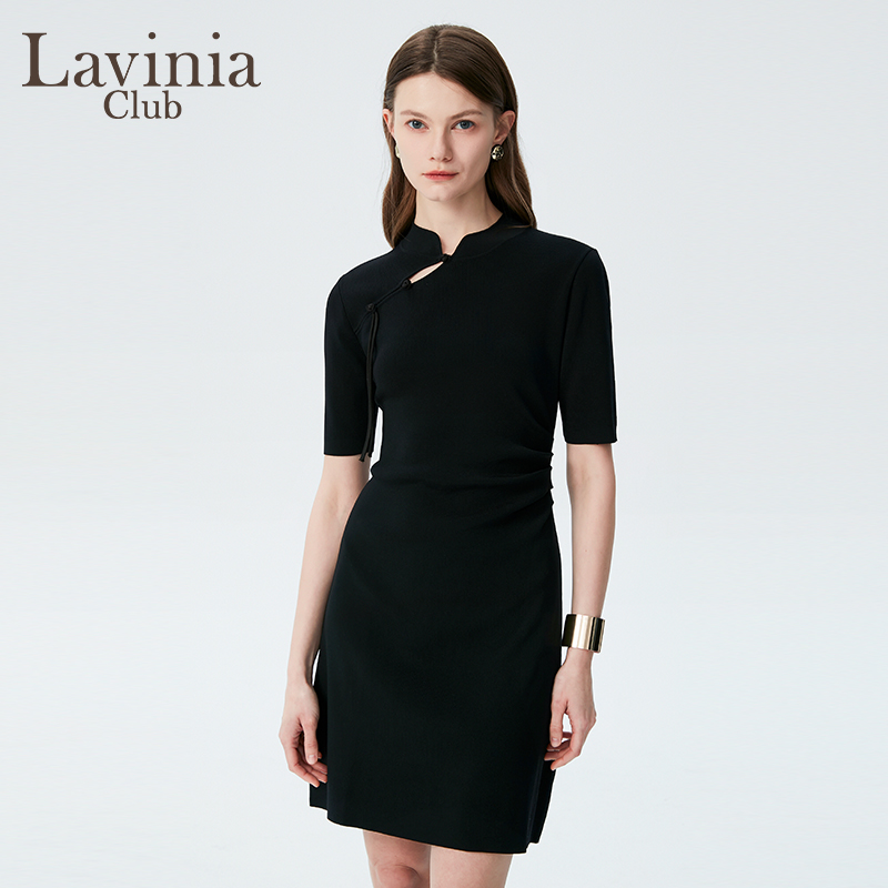 LaviniaClub新中式 别致洋气旗袍国风气质收腰小黑裙 连衣裙夏新款