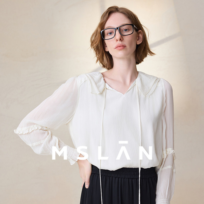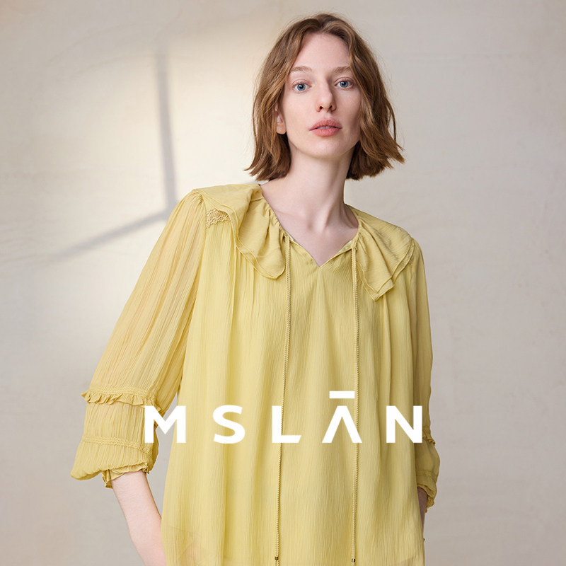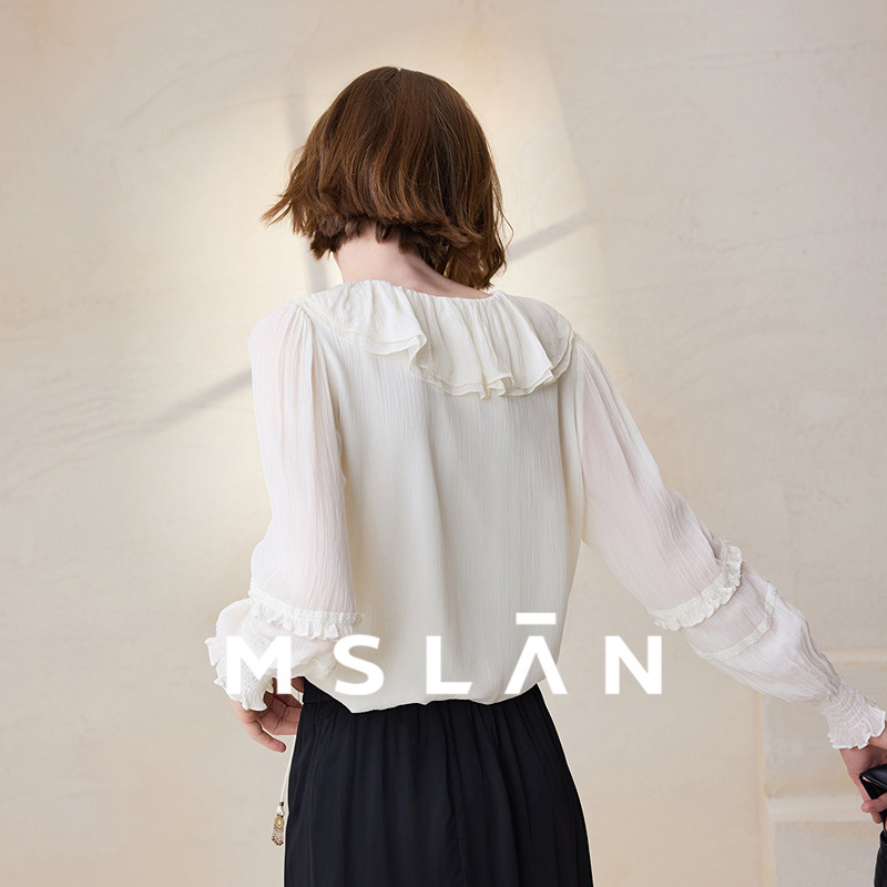 打揽荷叶边套衫 法式 MFCE1508 MSLAN呼吸感微透雪纺衫 轻盈天丝