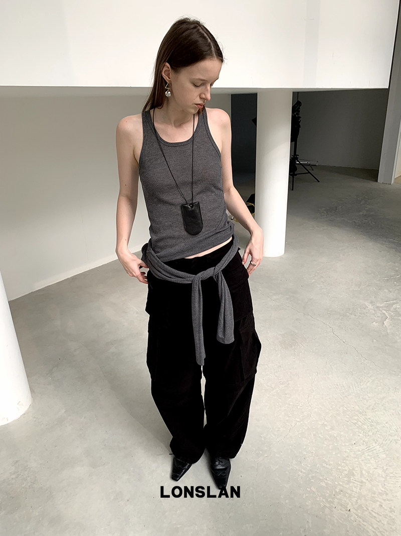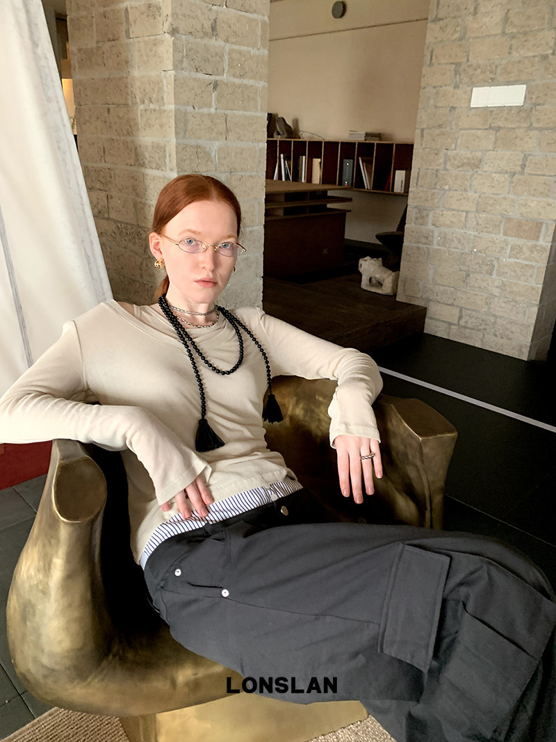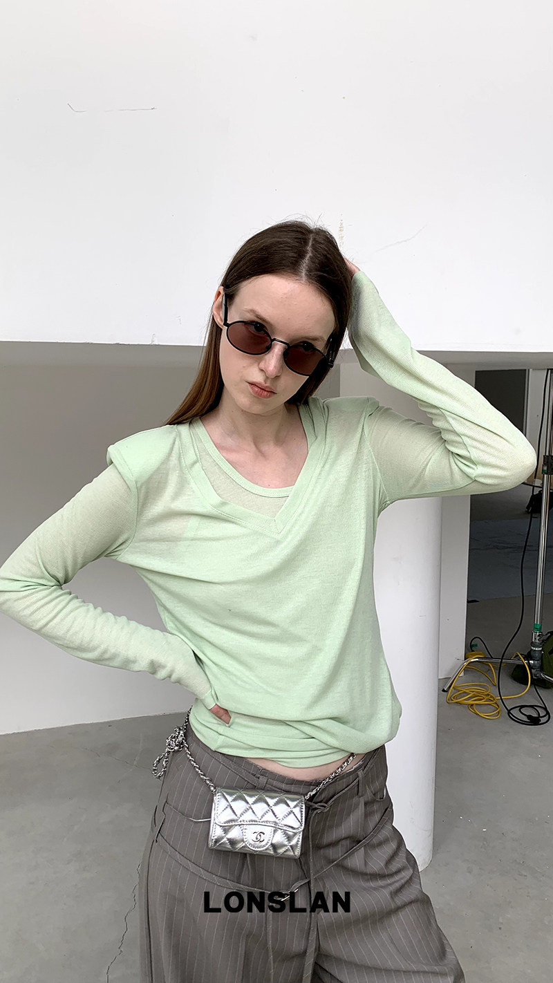 V领多穿防晒长袖 LONSLAN 多色背心 修身 T恤两件套 2024春夏新款
