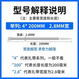 固定塑料捆扎带卡扣 200mm扎线带500条 白色 尼龙扎带4 自锁式