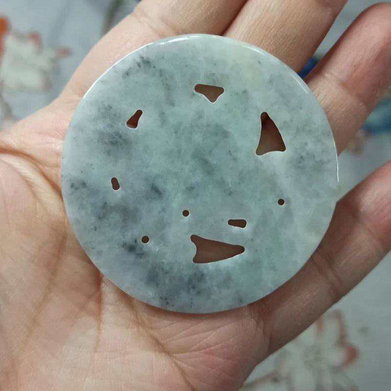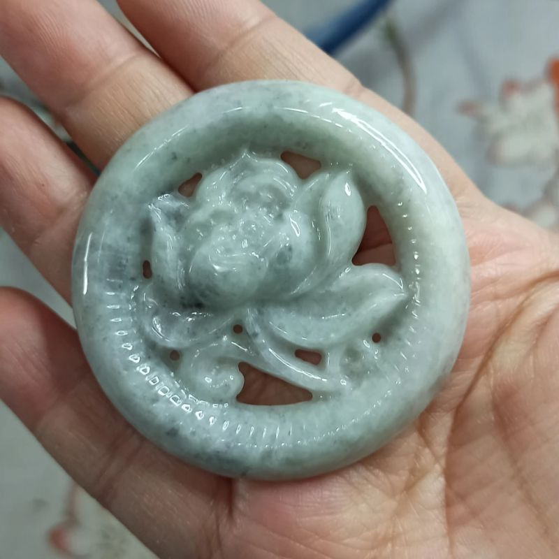 145缅甸天然翡翠吊坠荷花莲花牌子乌鸡飘花卡58mm左右满48元 包邮