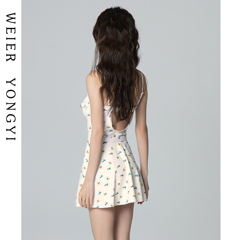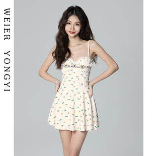 泳衣女款 保守学生小胸聚拢遮肚显瘦泡温泉 高级感性感吊带连体裙式
