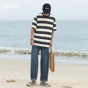 GOKIGA宫崎迦日系休闲百搭直筒牛仔裤 9004 男宽松水洗做旧阔腿长裤