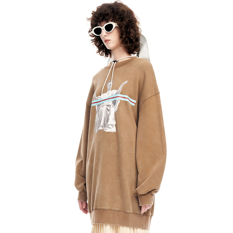 小众设计复古做旧男友风圆领廓形纯棉长款 PLUS 卫衣 JANE VVNK