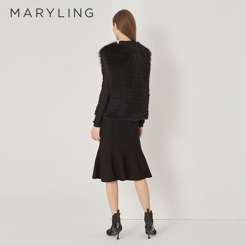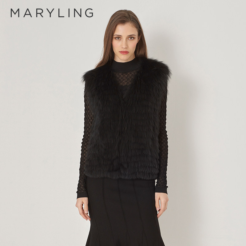 MARYLING玛俪琳秋季 黑色狐狸毛皮草马甲A1DGW9F100 新品