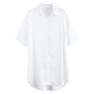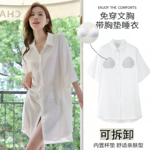春秋丝绸家居服 性感冰丝睡裙白色衬衫 睡衣带胸垫女2025年新款 夏季