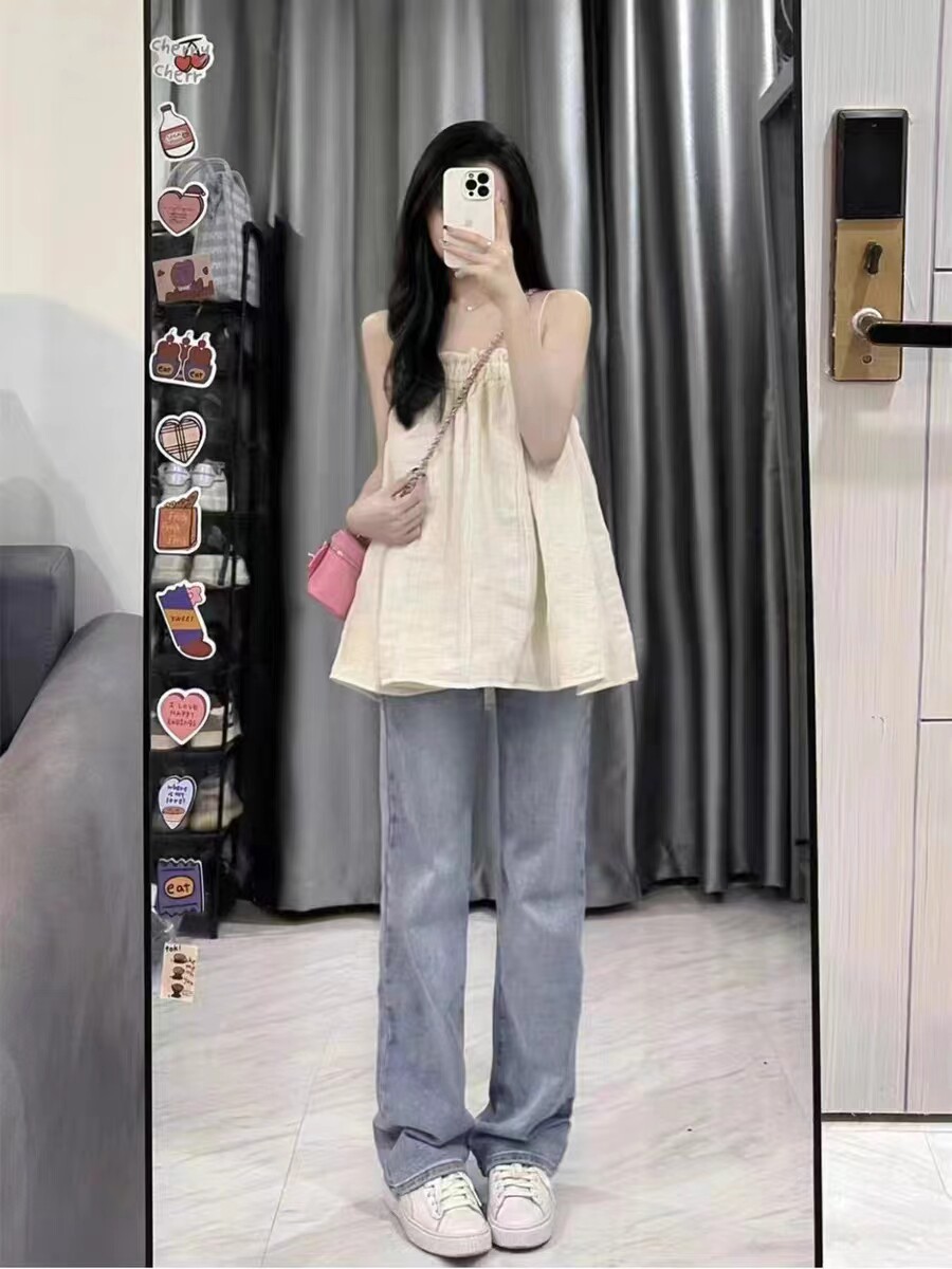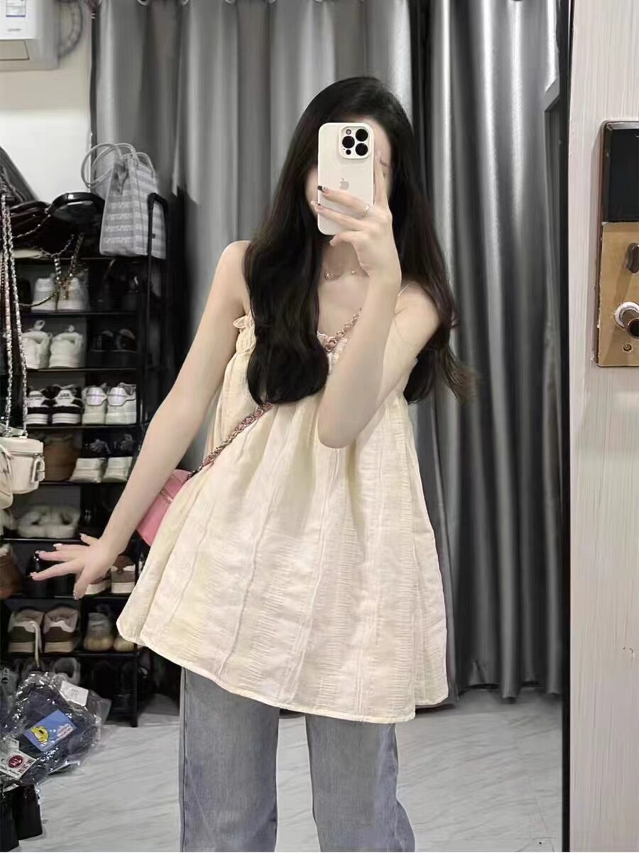 露肩上衣设计感小众 外穿美背纯欲无袖 大码 胖妹妹吊带背心女春夏季