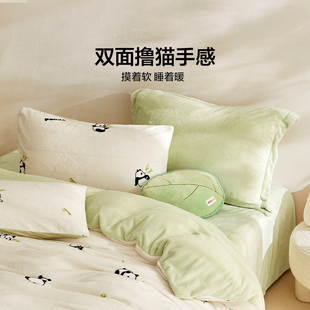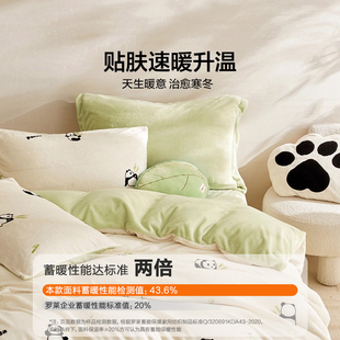 罗莱家纺LOVO牛奶绒四件套可爱熊猫加厚绒被套法兰绒套件25新品 款