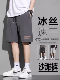 夏季 男韩版 冰丝五分裤 子宽松透气休闲沙滩大裤 2件装 衩运动裤 短裤