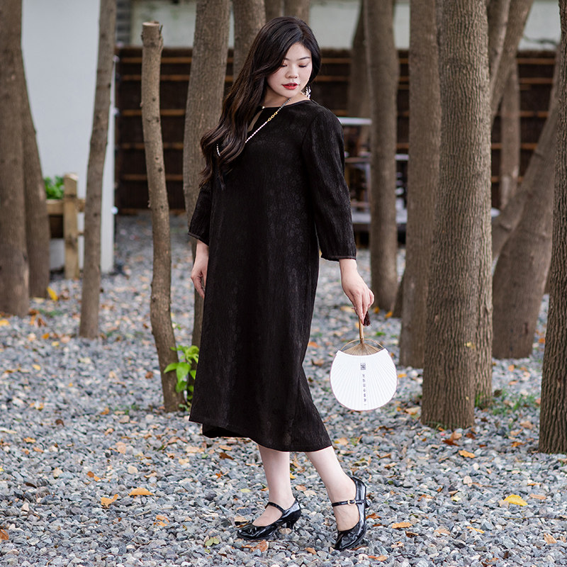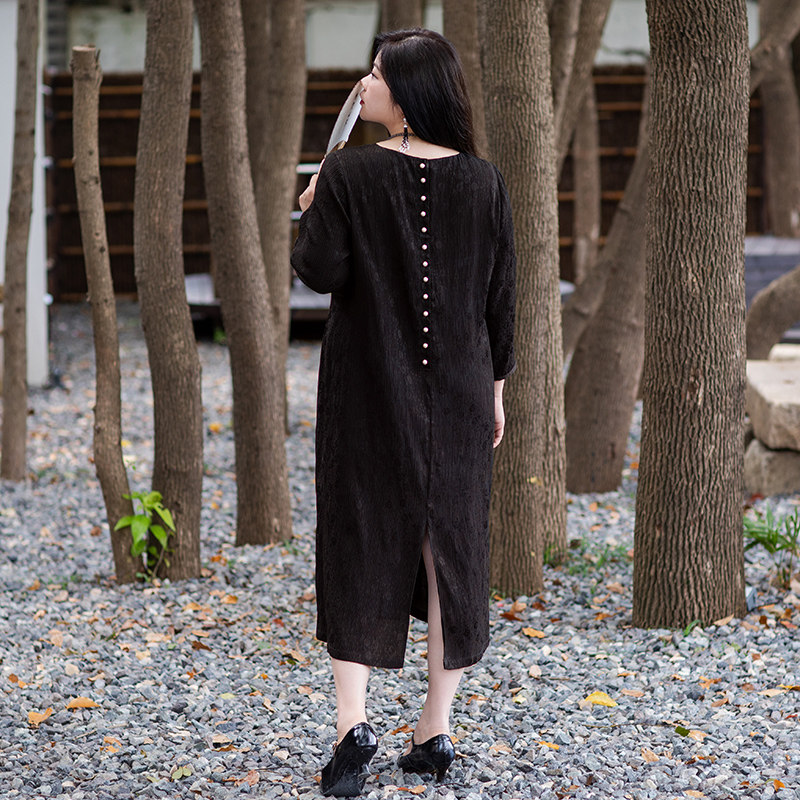 女装 真丝显瘦大码 暗纹提花裙子 重磅款 美丽客栈静听星辰连衣裙秋季