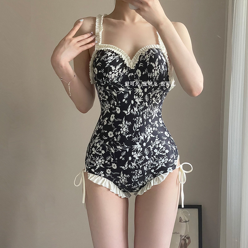 显瘦泡温泉黑色连体比基尼性感纯欲高级感 爆款 泳衣女款 2025年新款
