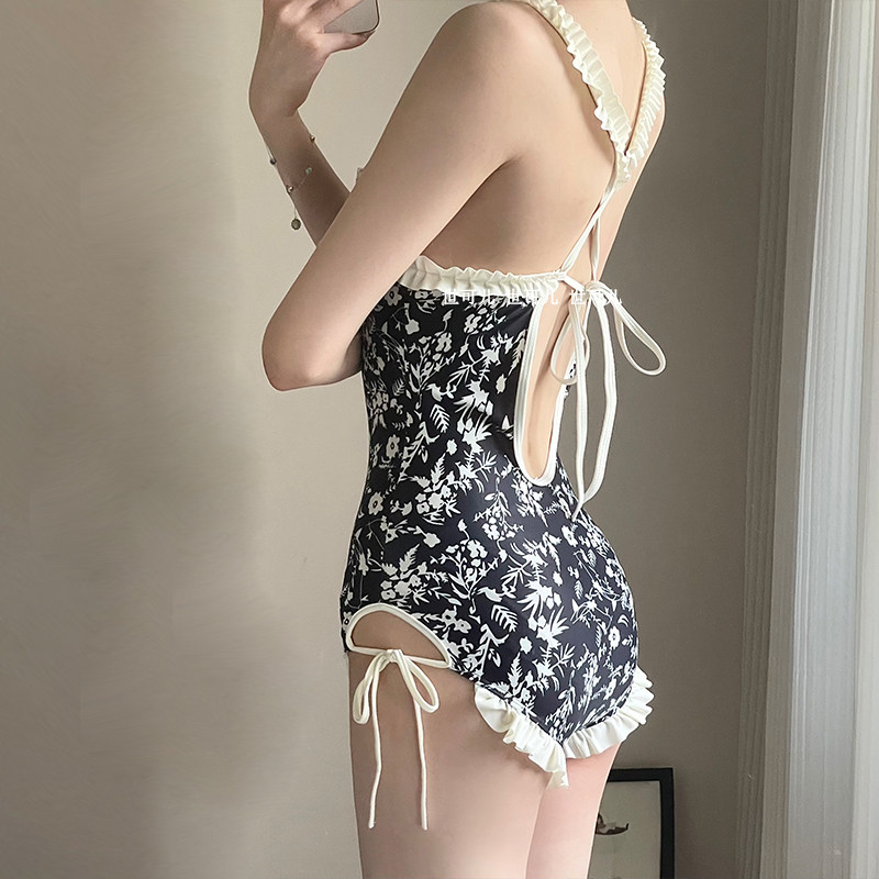 复古单肩性感露背小胸黑白色温泉 法式 泳衣女2025新款 连体显瘦时尚