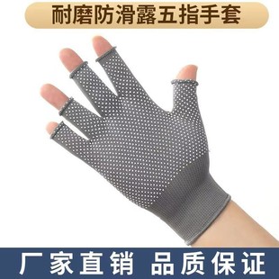 手套劳保工作耐磨防滑露二半指钓鱼骑行防晒外卖快递干活打包分拣
